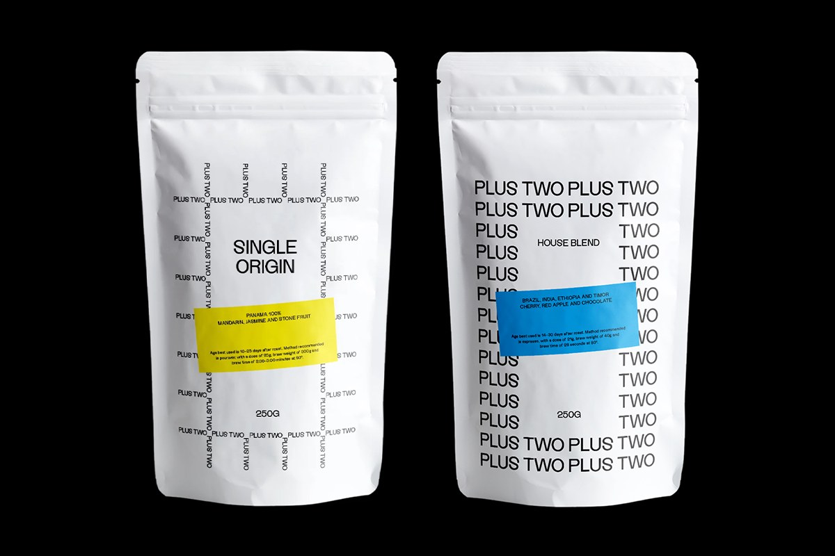 Plus Two Coffee — a business with logical layers and additions. And a visual identity that compliments the unique interior design that flips the typical cafe layout.